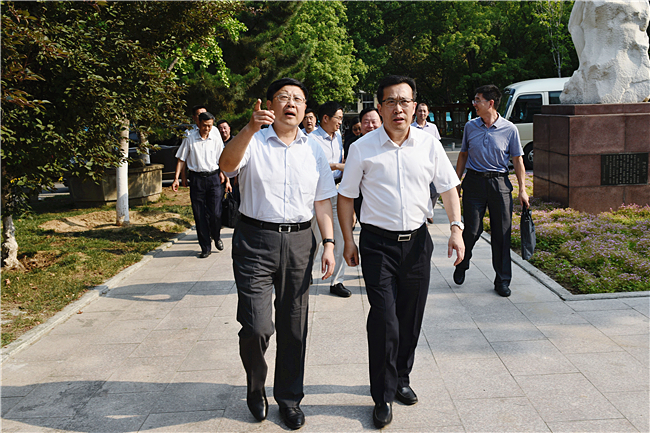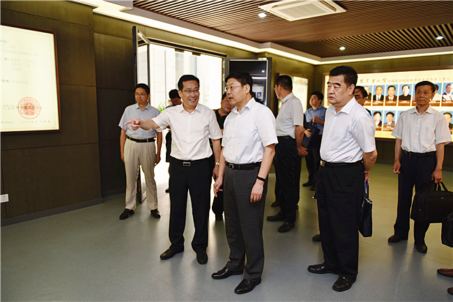 缓剑波背王良(左1)引见黉舍远去成长环境正在调研商谈会上,缓剑波背